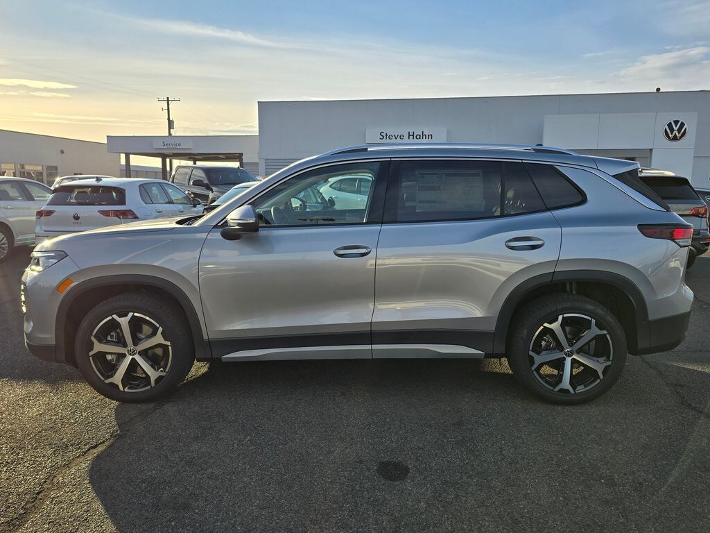 Silver Metallic 2026 Volkswagen Tiguan 2.0T SE 2.0L TSI DOHC 8-Speed Automatic AWD 4D Sport Utility AWD, 4-Wheel Disc Brakes, 4-Wheel Independent Suspension, 7 Speakers, ABS brakes, Air Conditioning, Alloy wheels, AM/FM radio: SiriusXM with 360L, Auto High-beam Headlights, Auto-dimming Rear-View mirror, Automatic temperature control, Brake assist, Bumpers: body-color, Compass, Delay-off headlights, Driver door bin, Driver vanity mirror, Dual front impact airbags, Dual front side impact airbags, Electronic Stability Control, Emergency communication system, Exterior Parking Camera Rear, Four wheel independent suspension, Front anti-roll bar, Front Bucket Seats, Front Center Armrest, Front dual zone A/C, Front reading lights, Fully automatic headlights, Heated door mirrors, Heated Front Seats, Heated front seats, Illuminated entry, Knee airbag, Leather Shift Knob, Low tire pressure warning, Occupant sensing airbag, Outside temperature display, Overhead airbag, Overhead console, Panic alarm, Passenger door bin, Passenger vanity mirror, Perforated V-Tex Leatherette Seating Surfaces, Power door mirrors, Power driver seat, Power Liftgate, Power steering, Power windows, Radio data system, Radio: MIB4 Composition Media Touchscreen with AM/FM, Rain sensing wipers, Rear anti-roll bar, Rear reading lights, Rear seat center armrest, Rear side impact airbag, Rear window defroster, Rear window wiper, Remote keyless entry, Security system, Speed control, Speed-sensing steering, Split folding rear seat, Spoiler, Steering wheel mounted audio controls, Tachometer, Telescoping steering wheel, Tilt steering wheel, Traction control, Trip computer, Turn signal indicator mirrors, Variably intermittent wipers, Wheels: 19" 2-Tone Machined Alloy, AWD. Price includes: $1000 - Retail Customer Bonus. Exp. 02/02/2026