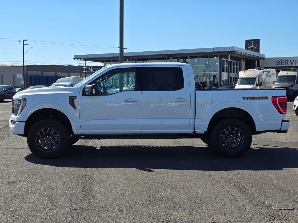 Clean CARFAX. White 2023 Ford F-150 Tremor 3.5L V6 EcoBoost 10-Speed Automatic 4WD 4D SuperCrew F-150 Tremor, 4D SuperCrew, 4WD, White, ABS brakes, Alloy wheels, Compass, Electronic Stability Control, Front dual zone A/C, Heated door mirrors, Heated front seats, Illuminated entry, Low tire pressure warning, Remote keyless entry, Traction control, 4-Wheel Disc Brakes, 6 Speakers, Air Conditioning, AM/FM radio: SiriusXM with 360L, Auto High-beam Headlights, Auto-dimming door mirrors, Automatic temperature control, Brake assist, Bumpers: body-color, Class IV Trailer Hitch Receiver, Delay-off headlights, Driver door bin, Dual front impact airbags, Dual front side impact airbags, Electronic Locking w/3.73 Axle Ratio, Emergency communication system: SYNC 4 911 Assist, Exterior Parking Camera Rear, Front anti-roll bar, Front Bucket Seats, Front Center Armrest, Front fog lights, Front reading lights, Front wheel independent suspension, Fully automatic headlights, GVWR: 7,050 lbs Payload Package, Navigation system: Connected Navigation, Occupant sensing airbag, Outside temperature display, Overhead airbag, Overhead console, Panic alarm, Passenger door bin, Passenger vanity mirror, Power door mirrors, Power driver seat, Power passenger seat, Power steering, Power windows, Radio data system, Radio: AM/FM SiriusXM w/360L, Rear reading lights, Rear step bumper, Rear window defroster, Security system, Speed control, Speed-sensing steering, Split folding rear seat, Steering wheel mounted audio controls, SYNC 4 w/Enhanced Voice Recognition, Tachometer, Telescoping steering wheel, Tilt steering wheel, Trip computer, Turn signal indicator mirrors, Unique Sport Cloth 40/Console/40 Power Front Seat, Variably intermittent wipers, Voltmeter, Wheels: 18" Alloy w/Dark Matte Finish, F-150 Tremor, 4D SuperCrew, 4WD, White, ABS brakes, Alloy wheels, Compass, Electronic Stability Control, Front dual zone A/C, Heated door mirrors, Heated front seats, Illuminated entry, Low tire pressure warning, Remote keyless entry, Traction control.