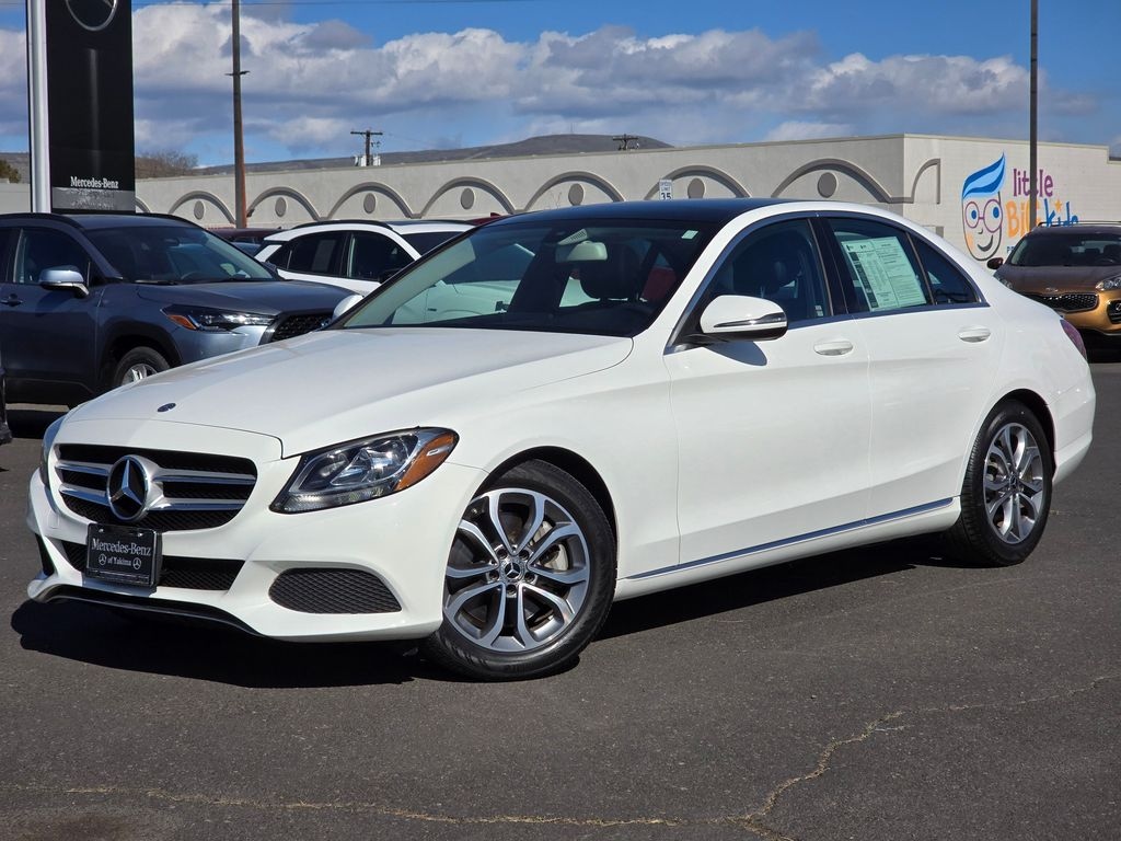 Recent Arrival! Clean CARFAX. White 2018 Mercedes-Benz C-Class C 300 2.0L I4 Turbocharged 9-Speed Automatic RWD 4D Sedan 4-way Power Driver's Lumbar Support, 4-Wheel Disc Brakes, 5 Speakers, ABS brakes, Air Conditioning, Alloy wheels, AM/FM radio, Anti-whiplash front head restraints, Auto tilt-away steering wheel, Auto-dimming door mirrors, Auto-dimming Rear-View mirror, Automatic temperature control, Bodyside moldings, Brake assist, Bumpers: body-color, CD player, Child-Seat-Sensing Airbag, Compass, Delay-off headlights, Driver door bin, Driver vanity mirror, Dual front impact airbags, Dual front side impact airbags, Electronic Stability Control, Emergency communication system: mbrace2, Exterior Parking Camera Rear, Four wheel independent suspension, Front anti-roll bar, Front Bucket Seats, Front Center Armrest, Front dual zone A/C, Front reading lights, Fully automatic headlights, Garage door transmitter: Homelink, Genuine wood console insert, Genuine wood dashboard insert, Genuine wood door panel insert, Head restraints memory, Heated door mirrors, Illuminated entry, Knee airbag, Low tire pressure warning, MB-Tex Upholstery, Memory seat, Occupant sensing airbag, Outside temperature display, Overhead airbag, Overhead console, Panic alarm, Passenger door bin, Passenger vanity mirror, Power door mirrors, Power driver seat, Power Front Seats w/Driver Memory, Power moonroof, Power passenger seat, Power steering, Power windows, Premium audio system: COMAND®, Radio data system, Radio: Audio 20, Rain sensing wipers, Rear anti-roll bar, Rear fog lights, Rear reading lights, Rear seat center armrest, Rear side impact airbag, Rear window defroster, Remote keyless entry, Security system, Single CD Player, Speed control, Speed-sensing steering, Split folding rear seat, Steering wheel memory, Steering wheel mounted audio controls, Tachometer, Telescoping steering wheel, Tilt steering wheel, Traction control, Trip computer, Turn signal indicator mirrors, Variably intermittent wipers, Weather band radio, Wheels: 17" Split Y-Spoke.