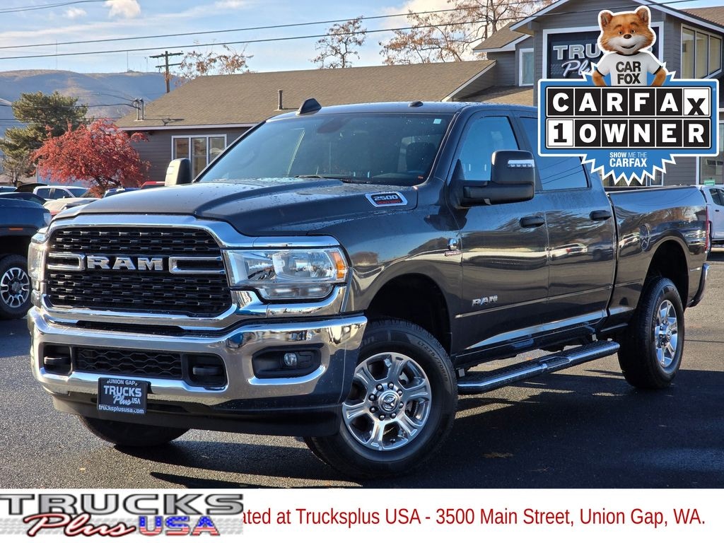 Recent Arrival! Clean CARFAX. Granite Crystal Metallic Clearcoat 2024 Ram 2500 Big Horn Cummins 6.7L I6 Turbodiesel 6-Speed Automatic 4WD 4D Crew Cab 2 Way Rear Headrest Seat, 2nd Row In Floor Storage Bins, 3.73 Axle Ratio, 4 Way Front Headrests, 4-Wheel Disc Brakes, 40/20/40 Split Bench Seat, 4G LTE Wi-Fi Hot Spot, 6 Speakers, 8.4" Touchscreen Display, ABS brakes, Active Noise Control System, Air Conditioning, Apple CarPlay, Auto Power-Folding Mirrors, Big Horn IP Badge, Black Exterior Mirrors, Bluetooth Handsfree Phone & Audio, Brake assist, Bumpers: chrome, Center Hub, Center Stack Storage Drawer, Chrome Flat Cab-Length Side Steps, Cloth 40/20/40 Bench Seat, Compass, Connectivity - US/Canada, Delay-off headlights, Driver door bin, Dual front impact airbags, Dual front side impact airbags, Dual Glove Boxes, Electronic Stability Control, Electronically Controlled Throttle, Emergency communication system: SiriusXM Guardian, Exterior Mirrors Courtesy Lamps, Exterior Mirrors w/Heating Element, Exterior Mirrors w/Supplemental Signals, Foam Bottle Insert (Door Trim Panel), Footwell Courtesy Lamp, For Details, Visit DriveUconnect.com, For More Info, Call 800-643-2112, Forward & Reverse Utility Lights, Front anti-roll bar, Front Armrest w/Cupholders, Front Center Armrest w/Storage, Front Center Seat Cushion Storage, Front Fog Lamps, Front License Plate Bracket, Front reading lights, Front Seat Back Map Pockets, Fully automatic headlights, Global Telematics Box Module (TBM), Glove Box Lamp, Google Android Auto, GPS Antenna Input, Heated door mirrors, Illuminated entry, Integrated Center Stack Radio, Integrated Voice Command w/Bluetooth, Leather Wrapped Steering Wheel, Level 1 Equipment Group, Locking Lower Glove Box, Low tire pressure warning, Manual Adjust 4-Way Driver Seat, Manual Adjust 4-Way Front Passenger Seat, Manufacturer's Statement of Origin, Mirror Running Lights, Occupant sensing airbag, Outside temperature display, Overhead airbag, Overhead console, Panic alarm, ParkView Rear Back-Up Camera, Passenger door bin, Passenger vanity mirror, Power 2-Way Driver Lumbar Adjust, Power Adjust 8-Way Driver Seat, Power Adjust Mirrors, Power Adjustable Convex Aux Mirrors, Power door mirrors, Power Heated Fold Telescope Mirrors, Power steering, Power Telescoping Mirrors, Power windows, Premium Cloth 40/20/40 Bench Seat (DISC), Quick Order Package 2HZ Big Horn, Radio data system, Radio: Uconnect 3 w/5" Display, Radio: Uconnect 5 W w/8.4" Display, Rear 60/40 Folding Seat, Rear anti-roll bar, Rear Dome w/On/Off Switch Lamp, Rear Folding Seat, Rear seat center armrest, Rear step bumper, Remote keyless entry, Remote USB Port - Charge Only, Selectable Tire Fill Alert, SiriusXM Radio Service, SiriusXM Satellite Radio, Speed control, Steering Wheel Mounted Audio Controls, Storage Tray, Tachometer, Tilt steering wheel, Tip Start, Tow Hooks, Traction control, Trip computer, Turn signal indicator mirrors, Variably intermittent wipers, Voltmeter, Wheels: 18" x 8.0" Polished Aluminum, Wheels: 18" x 8.0" Steel Chrome Clad.