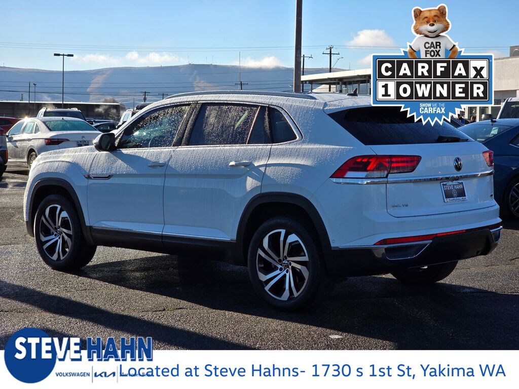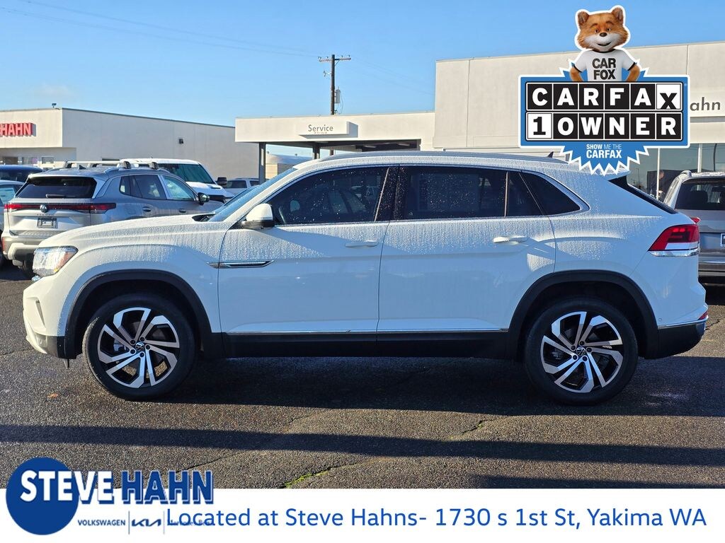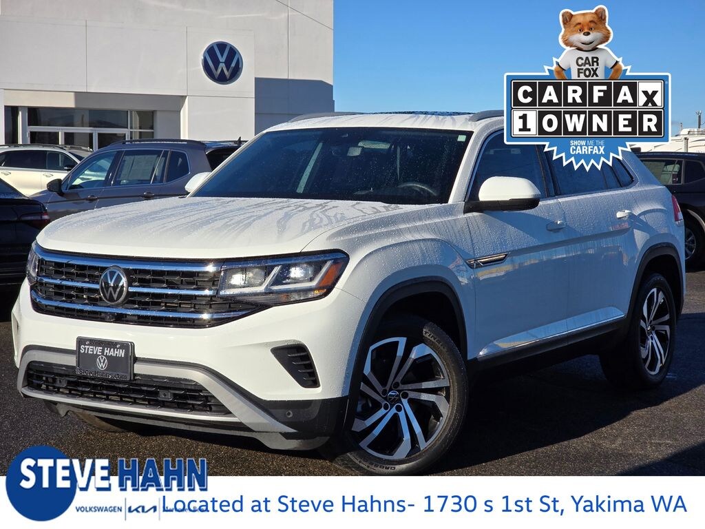 Recent Arrival! Clean CARFAX. Pure White 2021 Volkswagen Atlas Cross Sport 3.6L V6 SEL Premium 3.6L VR6 8-Speed Automatic with Tiptronic AWD 4D Sport Utility 12 Speakers, 3.60 Axle Ratio, 4-Wheel Disc Brakes, ABS brakes, Air Conditioning, Alloy wheels, AM/FM radio: SiriusXM with 360L, Auto High-beam Headlights, Auto-dimming Rear-View mirror, Automatic temperature control, Brake assist, Bumpers: body-color, Compass, Delay-off headlights, Driver door bin, Driver vanity mirror, Dual front impact airbags, Dual front side impact airbags, Electronic Stability Control, Emergency communication system: VW Car-Net services (capabilities require enrollment or subscription), Four wheel independent suspension, Front anti-roll bar, Front Bucket Seats, Front Center Armrest, Front dual zone A/C, Front fog lights, Front reading lights, Fully automatic headlights, Heated & Ventilated Front Comfort Sport Seats, Heated door mirrors, Heated front seats, Heated rear seats, Heated steering wheel, Illuminated entry, Leather Shift Knob, Low tire pressure warning, Memory seat, Navigation System, Occupant sensing airbag, Outside temperature display, Overhead airbag, Overhead console, Panic alarm, Passenger door bin, Passenger vanity mirror, Perforated Vienna Leather Seating Surfaces, Power door mirrors, Power driver seat, Power Liftgate, Power moonroof, Power passenger seat, Power steering, Power windows, Radio data system, Radio: MIB3 Discover Media w/8" Touchscreen Navigation, Rain sensing wipers, Rear anti-roll bar, Rear reading lights, Rear seat center armrest, Rear window defroster, Rear window wiper, Remote keyless entry, Roof rack: rails only, Security system, Speed control, Speed-sensing steering, Split folding rear seat, Spoiler, Standard Suspension, Steering wheel mounted audio controls, Tachometer, Telescoping steering wheel, Tilt steering wheel, Traction control, Trip computer, Turn signal indicator mirrors, Variably intermittent wipers, Ventilated front seats, Wheels: 20" 5-Spoke 2-Tone Machined Alloy.