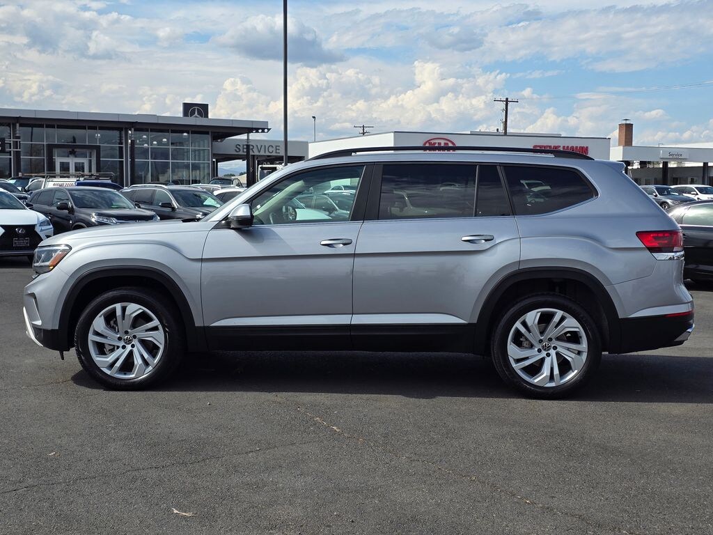 Recent Arrival! Silver 2023 Volkswagen Atlas 3.6L V6 SE w/Technology 3.6L VR6 8-Speed Automatic with Tiptronic AWD 4D Sport Utility 3.60 Axle Ratio, 3rd row seats: split-bench, 4-Wheel Disc Brakes, 6 Speakers, ABS brakes, Air Conditioning, Alloy wheels, AM/FM radio: SiriusXM with 360L, Auto-dimming Rear-View mirror, Automatic temperature control, Brake assist, Bumpers: body-color, Compass, Delay-off headlights, Driver door bin, Driver vanity mirror, Dual front impact airbags, Dual front side impact airbags, Electronic Stability Control, Emergency communication system: VW Car-Net Safe & Secure 5-year, Exterior Parking Camera Rear, Four wheel independent suspension, Front anti-roll bar, Front Bucket Seats, Front Center Armrest, Front dual zone A/C, Front fog lights, Front reading lights, Fully automatic headlights, Heated Comfort Front Bucket Seats, Heated door mirrors, Heated front seats, Illuminated entry, Leather Shift Knob, Low tire pressure warning, Occupant sensing airbag, Outside temperature display, Overhead airbag, Overhead console, Panic alarm, Passenger door bin, Passenger vanity mirror, Perforated V-Tex Leatherette Seating Surfaces, Power door mirrors, Power driver seat, Power Liftgate, Power steering, Power windows, Radio data system, Radio: MIB3 Composition Media w/8" Touchscreen, Rain sensing wipers, Rear air conditioning, Rear anti-roll bar, Rear reading lights, Rear seat center armrest, Rear window defroster, Rear window wiper, Remote keyless entry, Security system, Speed control, Speed-sensing steering, Split folding rear seat, Spoiler, Standard Suspension, Steering wheel mounted audio controls, Tachometer, Telescoping steering wheel, Tilt steering wheel, Traction control, Trip computer, Turn signal indicator mirrors, Variably intermittent wipers, Wheels: 20" x 8J 5-Spoke Silver Painted Alloy.
